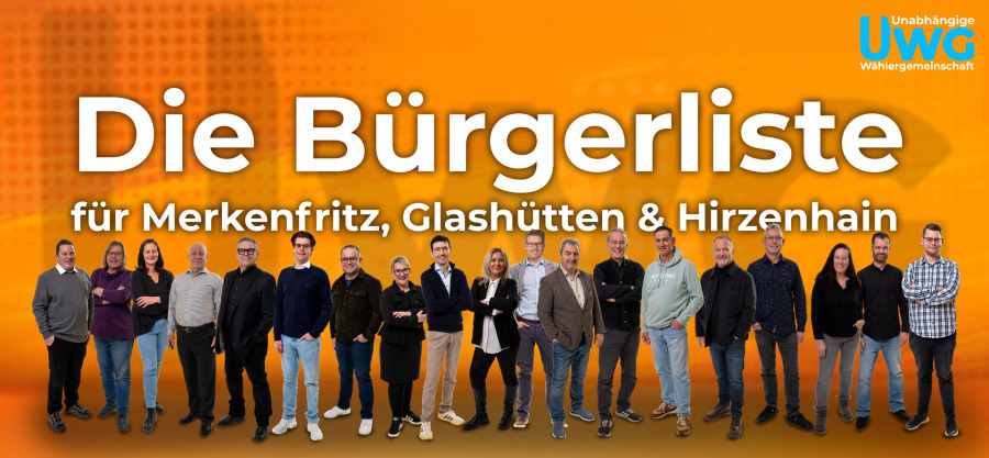 In mehreren Workshops hat die UWG ihre Leitlinien für die kommenden Jahre entwickelt. Gemeinsam sollen weiterhin Ideen umgesetzt und eine moderne, bezahlbare Infrastruktur geschaffen werden, um eine starke Gemeinschaft für Jung und Alt zu fördern. Die UWG möchte auch künftig Politik für alle Bürger machen – unabhängig von Parteien und davon, von wem Ideen und Vorschläge stammen. Der Wahlkampf steht daher unter dem Motto „UWG – Die Bürgerliste für Merkenfritz, Glashütten &Hirzenhain.